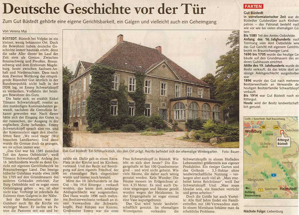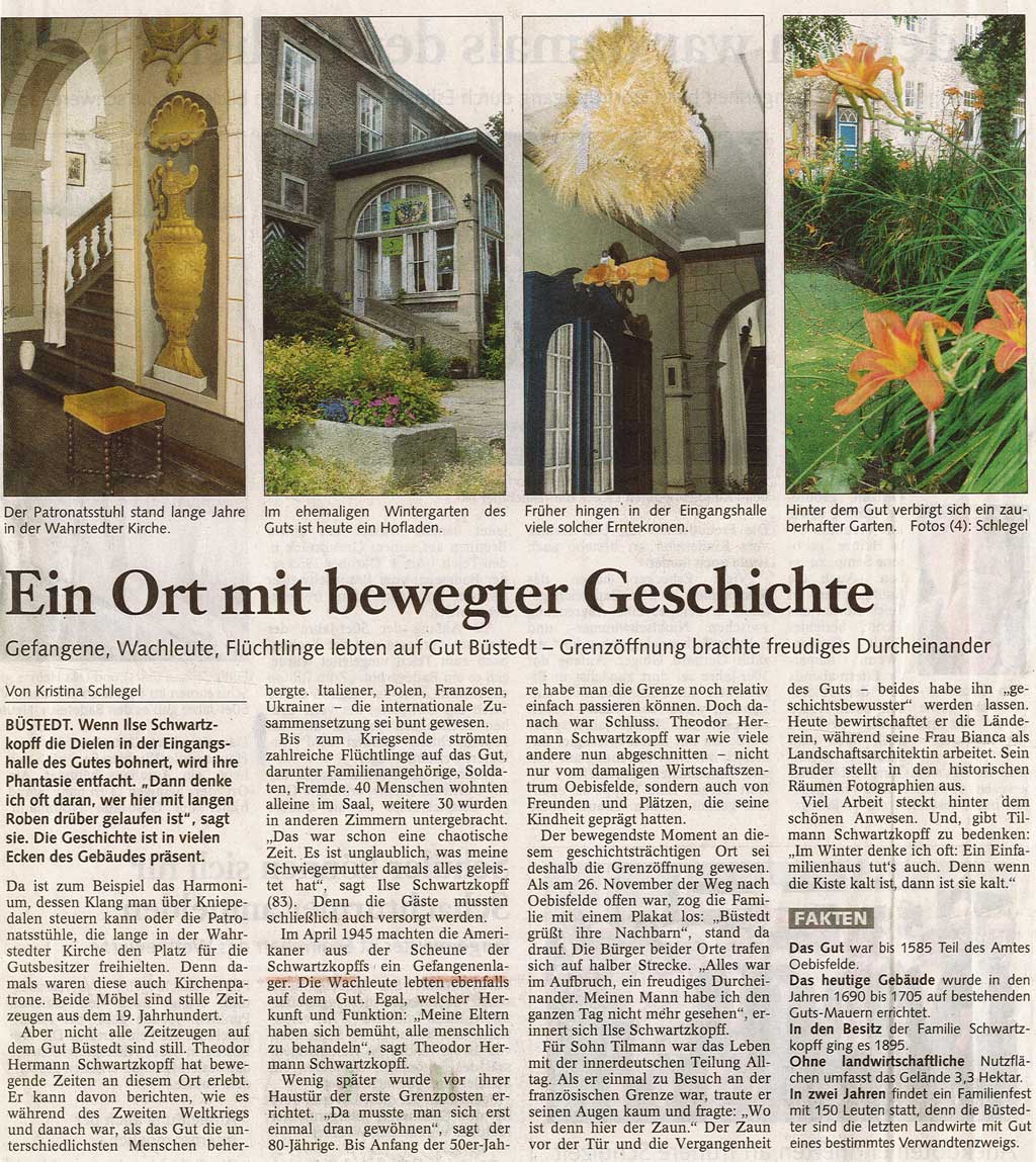 Und heute? Heute wird der Familienbetrieb federführend von Tilmann und Bianca Schwartzkopff bewirtschaftet. Der Betrieb ist modernisiert und das unter Denkmalschutz stehende Gebäudeensemble wird fortlaufend weiter saniert. Die Schwerpunkte des Betriebes sind die nachhaltige Landwirtschaft, die Vermarktung regionaler Produkte über den Hofladen und die Verkaufsfahrzeuge sowie unseren Regiomaten. Daneben wird seit 2012 gemeinsam mit mehreren Partnern eine Biogasanlage betrieben. Verantwortung und Nachhaltigkeit wird bei Schwartzkopffs großgeschrieben! Kreislaufwirtschaft, vielfältige Fruchtfolge u.a. mit Sonnenblumen, Emmer, Dinkel, Einkorn, Brache und Blühflächen garantieren eine hohe Biodiversität, so dass Fauna und Flora ein vielfältiger Lebensraum geboten wird.